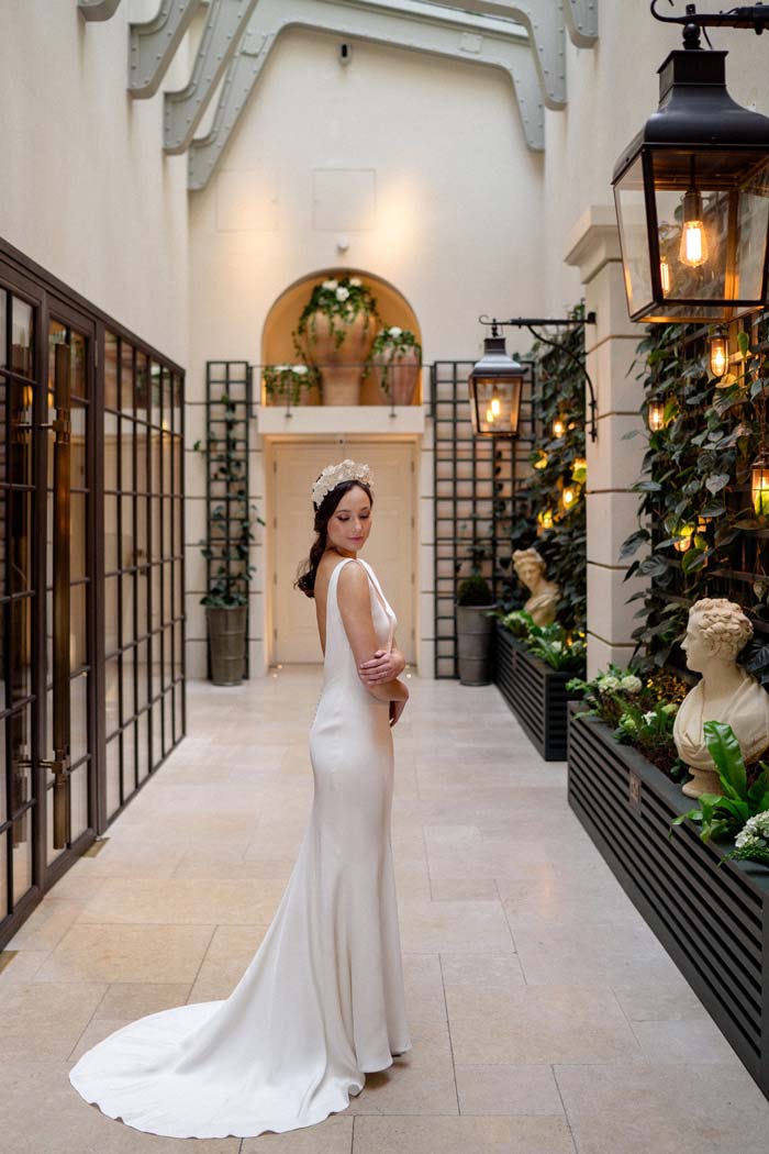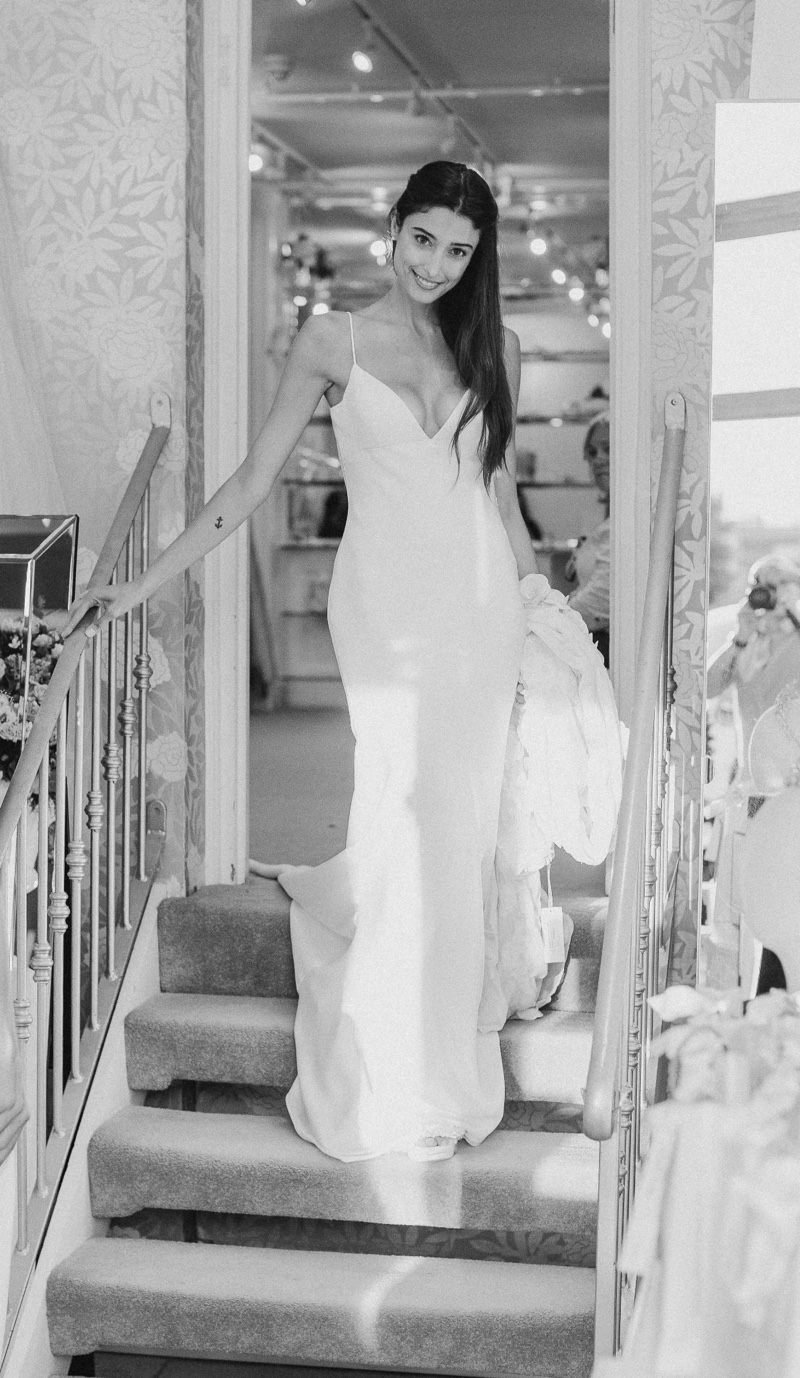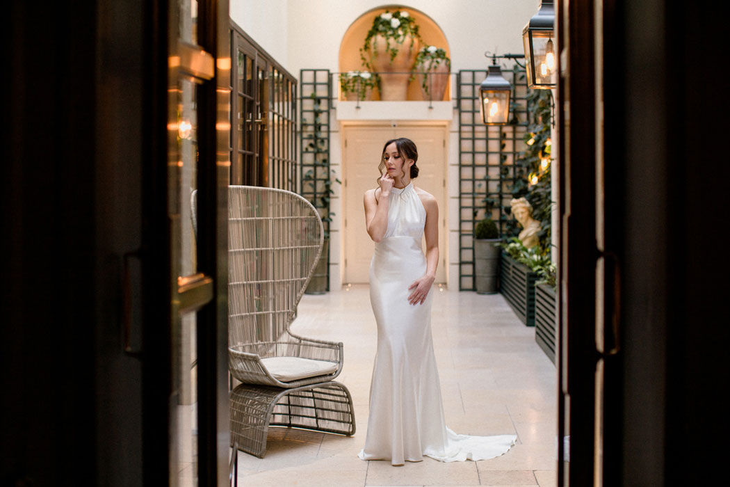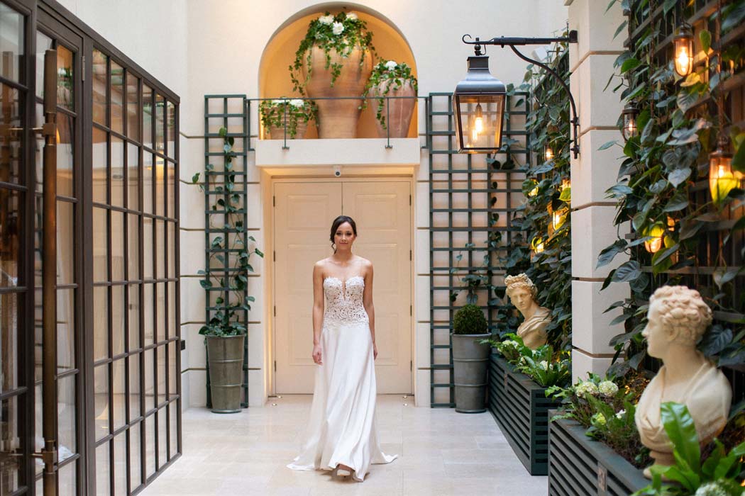 Every season you will find a capsule couture collection. The designs gently follow the breeze of fashion whilst remaining true to classic construction and beautiful flattering fit. All styles are embraced from boho bridal dresses to elegant wedding gowns and always in the most beautiful quality silks and laces. The couture collection is the most flexible of the bridal collections in the boutique as they are all individually made in house, dresses can be adapted or re designed in any way to suit the bride’s taste. As long as the design is flattering and works technically, almost anything is possible!