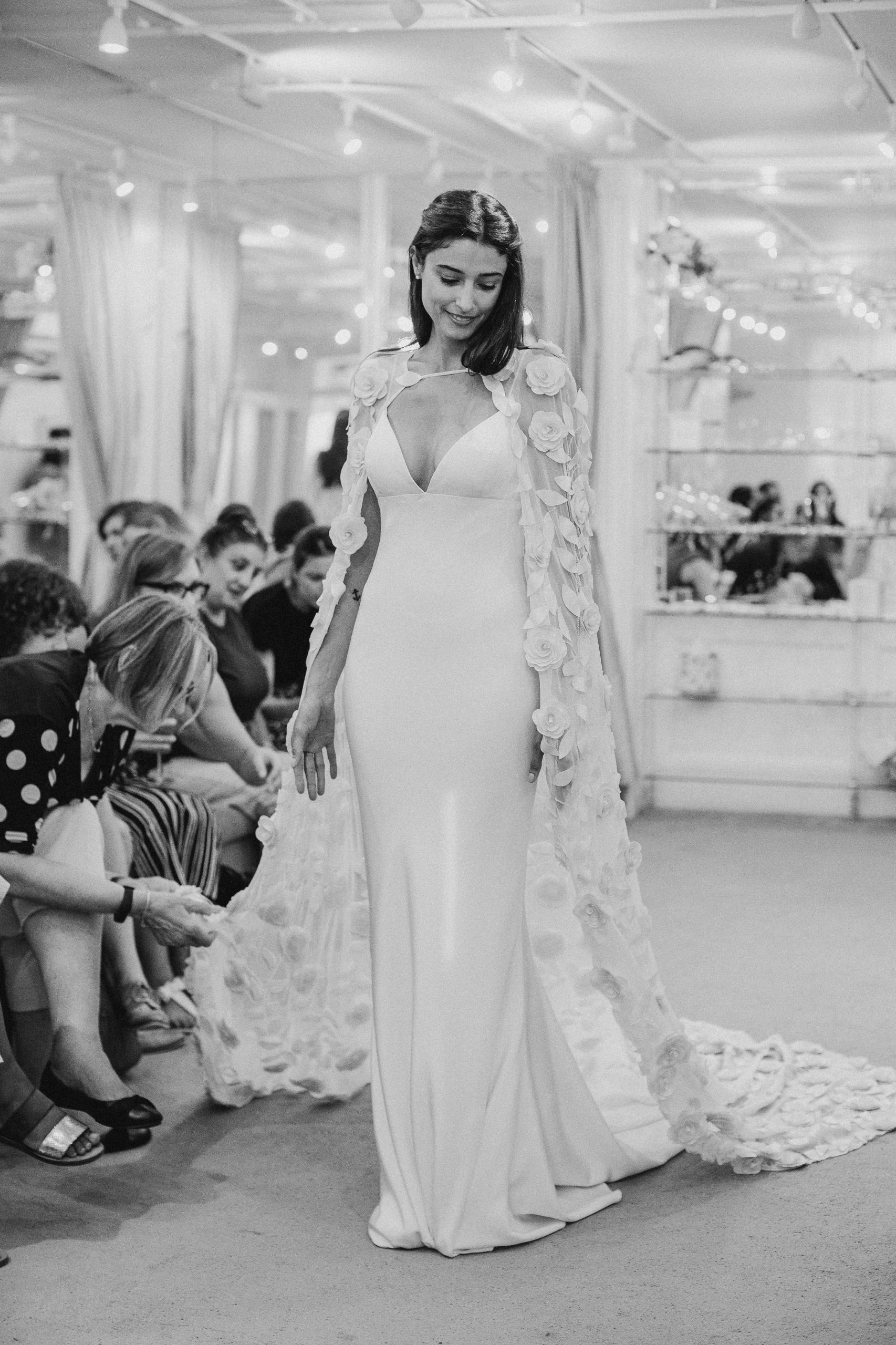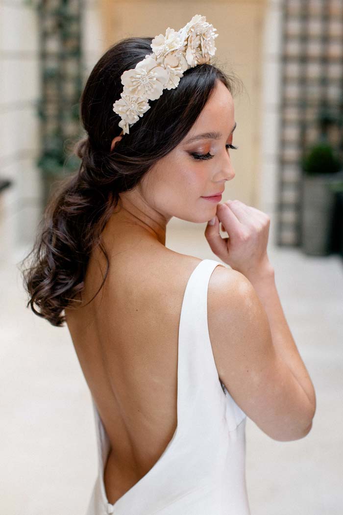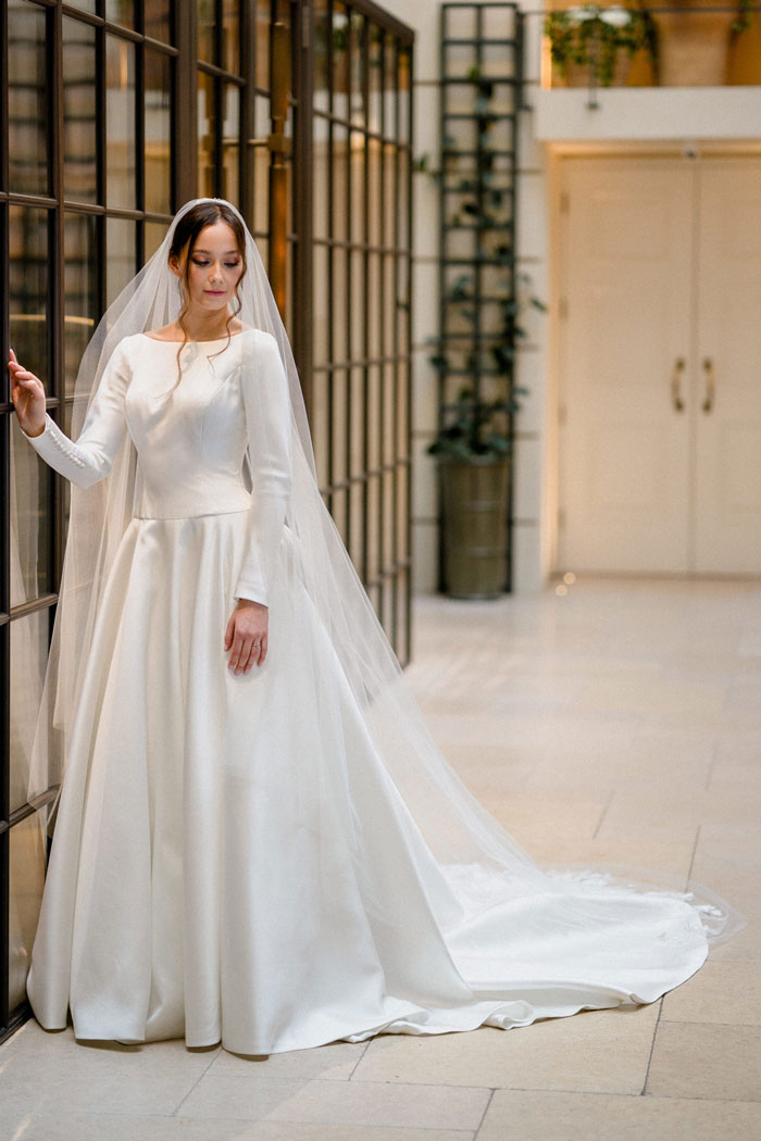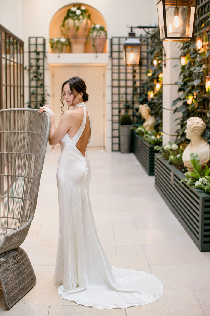 Every season you will find a capsule couture collection. The designs gently follow the breeze of fashion whilst remaining true to classic construction and beautiful flattering fit. All styles are embraced from boho bridal dresses to elegant wedding gowns and always in the most beautiful quality silks and laces. The couture collection is the most flexible of the bridal collections in the boutique as they are all individually made in house, dresses can be adapted or re designed in any way to suit the bride’s taste. As long as the design is flattering and works technically, almost anything is possible!